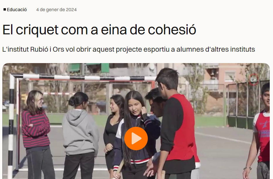 13 de December de 2023 Reportatge al programa Aula de TV L’HDigital sobre el projecte ApS “El criquet uneix” de l’Institut Rubió i Ors (desembre 2023)